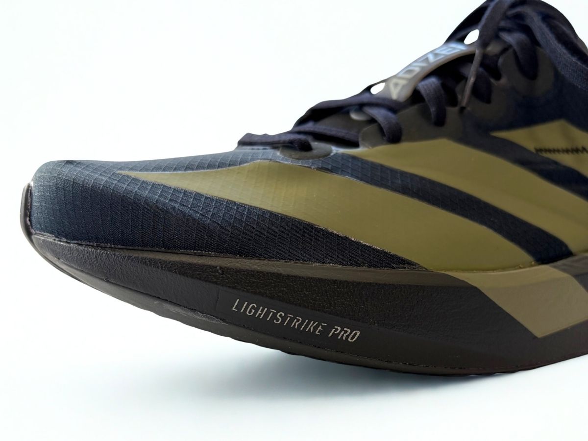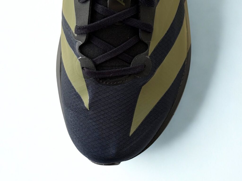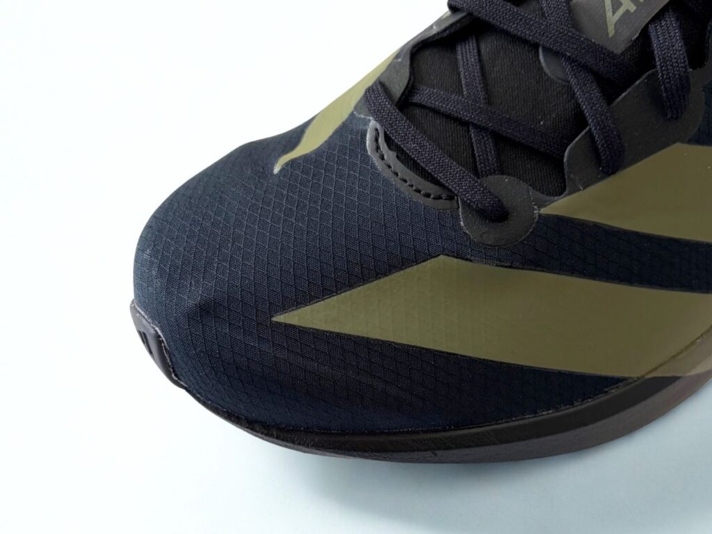 アディゼロ ジャパン 9のつま先には、形状を維持するための薄いパーツが内側から貼られています。