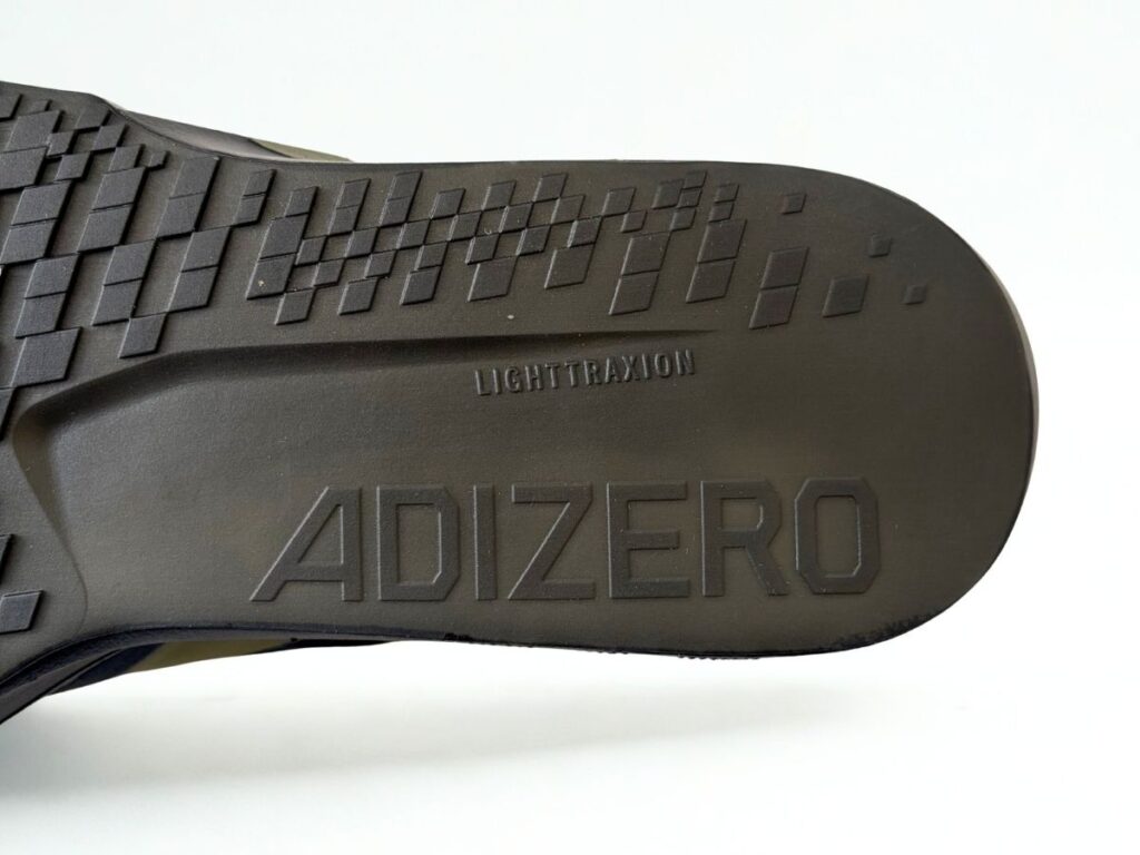 アディゼロ ジャパン 9のアウトソールには、高いグリップ力と軽量性が特徴のLIGHTTRAXION(ライトトラクション)が非常に薄く(1mm〜2mm程度)貼られています。