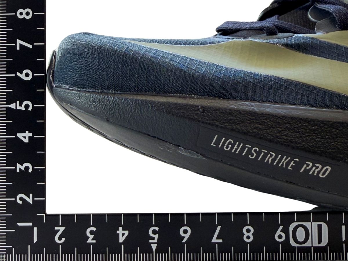 これはLIGHTSTRIKE PROフォームの特性だけでなく、薄くて軽いLIGHTTRAXION アウトソールとの組み合わせも影響している可能性があります。(通常、ある程度の厚みと剛性があるアウトソールはシューズの安定感に寄与しますが、本モデルはその要素が極限まで削ぎ落とされているためです。)