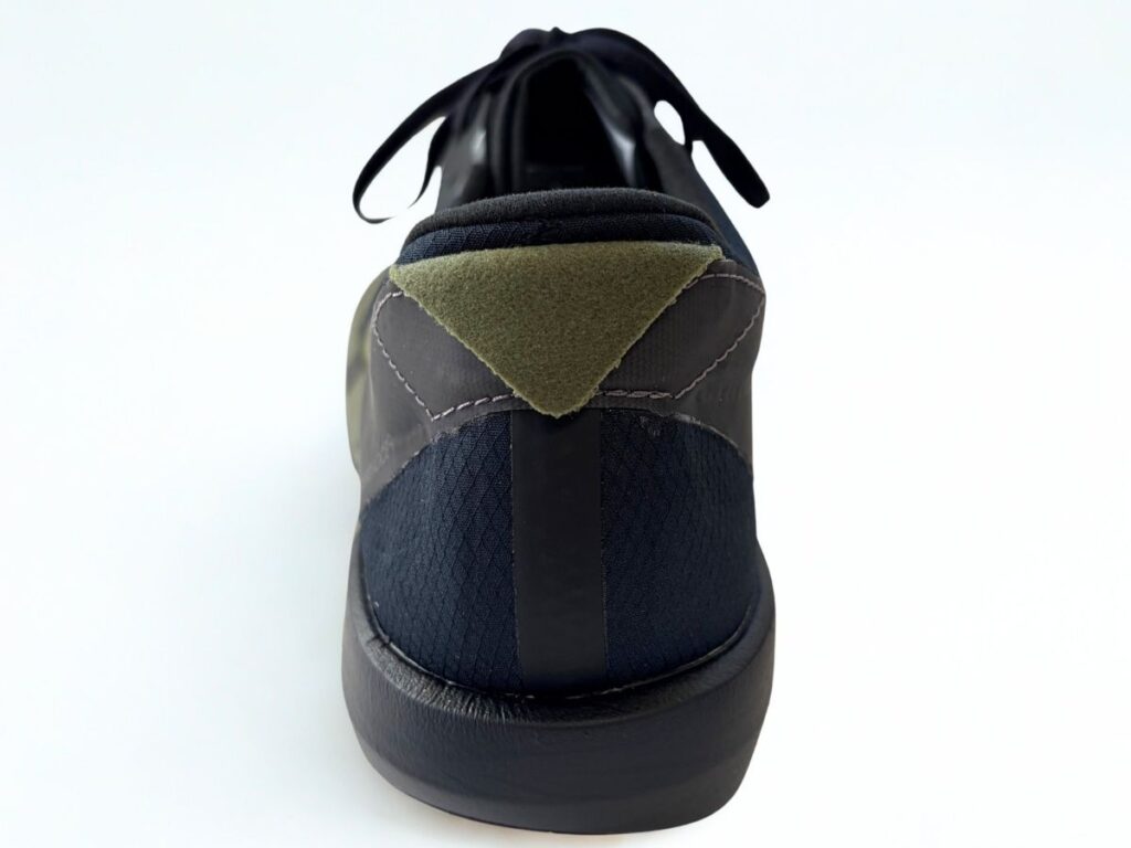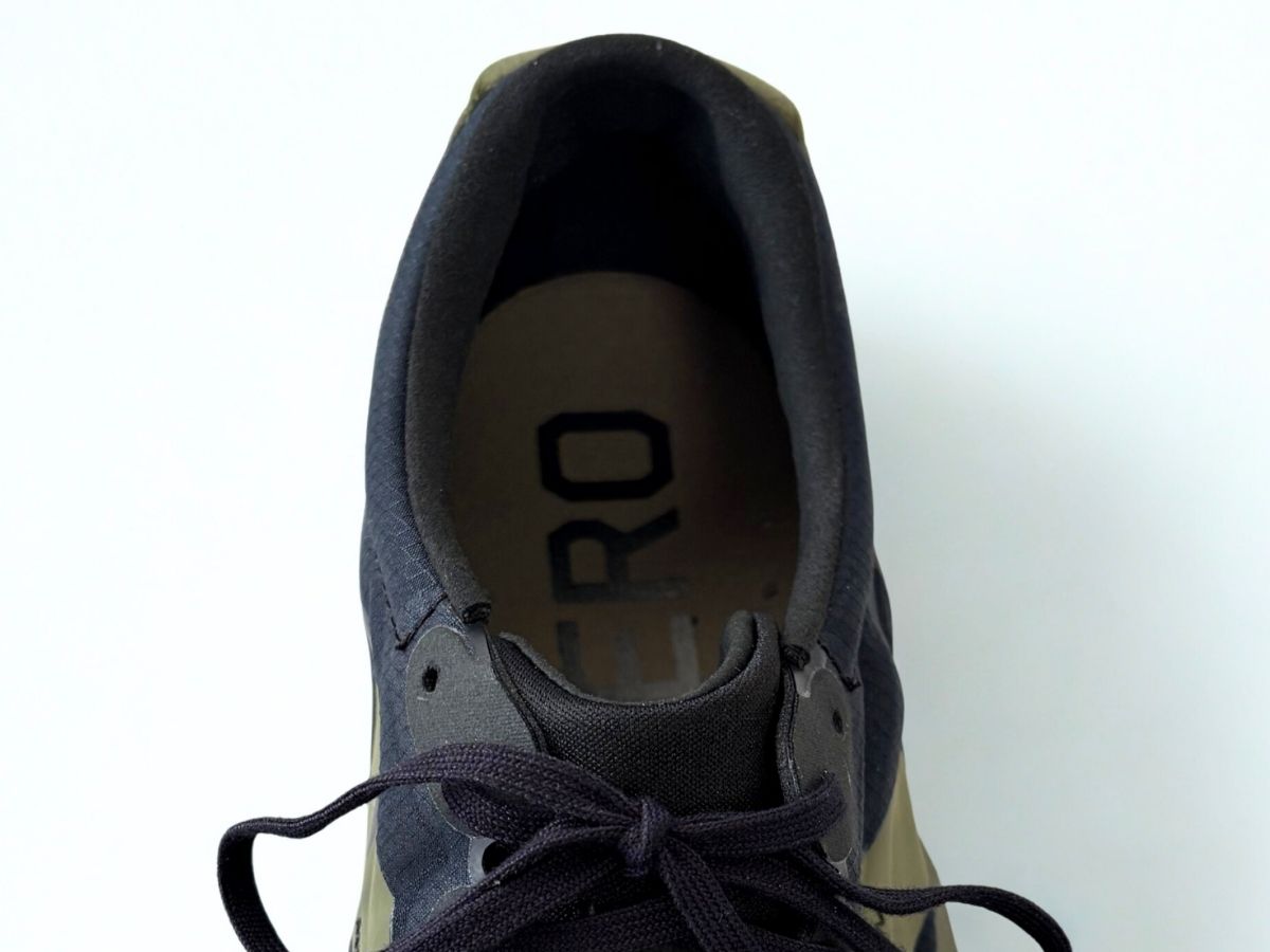 ヒールカウンターには硬質の保護材(ヒールカップ)は入っておらず、かかとのプロテクションは最低限となっています。剛性こそ低いですがフィット感は抜群で、走行中にかかとの抜けを感じることはありませんでした。