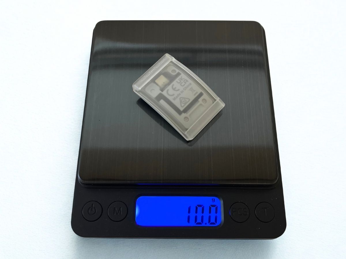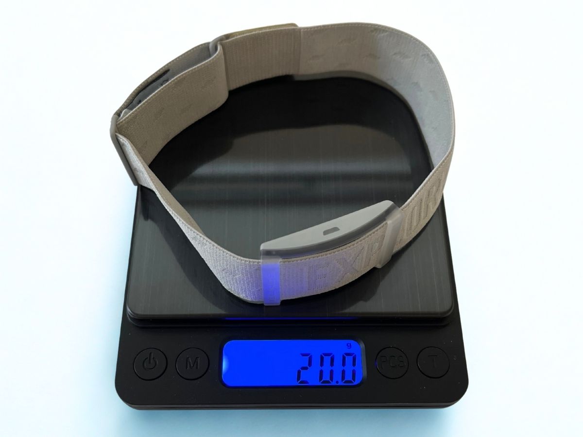 COROS心拍センサーは、メーカー公表値19g(実測値20g)と非常に軽量な上、汗による重量増が少ない点も特長です。