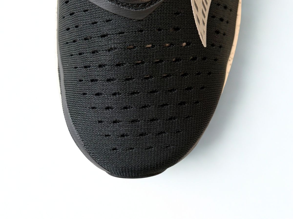 エンジニアードメッシュ単体で作られた、非常にシンプルなトゥボックスです。補強材は入っていないため、足の自然な動きを阻害しません。