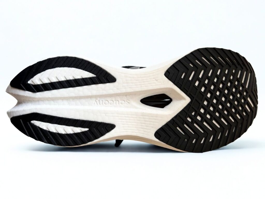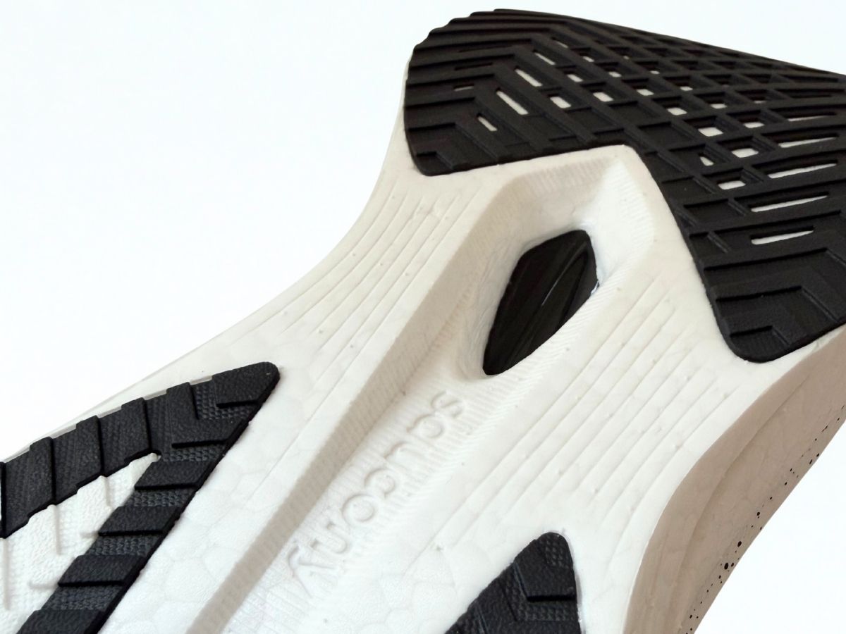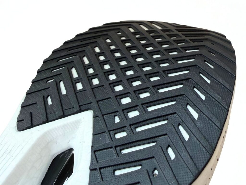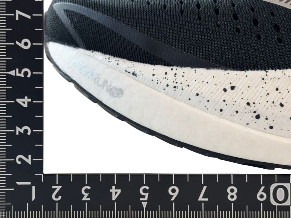 一見耐久性が心配に見える構造ですが、同じ構造の初代エンドルフィンスピードを1000km以上履いた筆者の経験から言えば、一般的なフォアフット着地の方であれば、剥き出しのミッドソールの削れは心配しなくても大丈夫です。