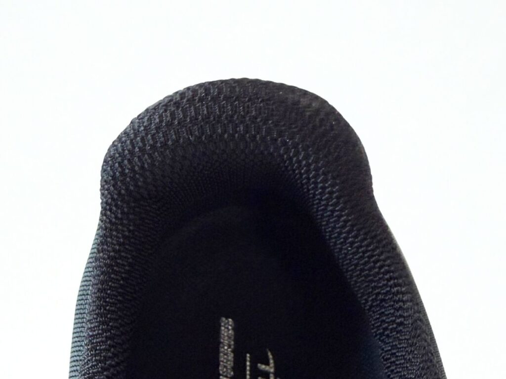 靴紐の結び目がくるあたりには、比較的しっかりとしたクッション材が配置されています。靴紐をきつめに結んでも、甲への圧迫感は少ない作りです。