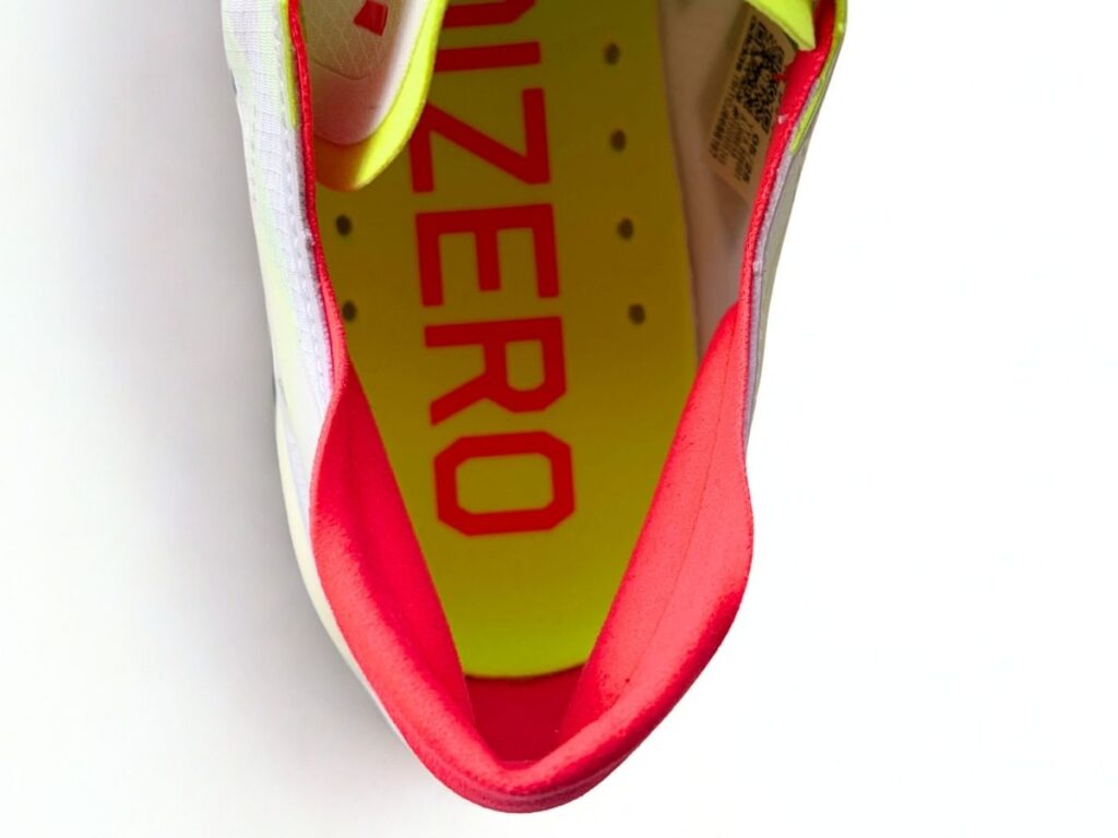 履き口周りはほとんど伸縮しないため、足型さえ合えば、靴紐をきつく結ばなくてもかなり高いフィット感を得られます。一方で、物理的に履き口の広がりが制限されているため、甲高のランナーは足入れすらできないリスクがあります。
