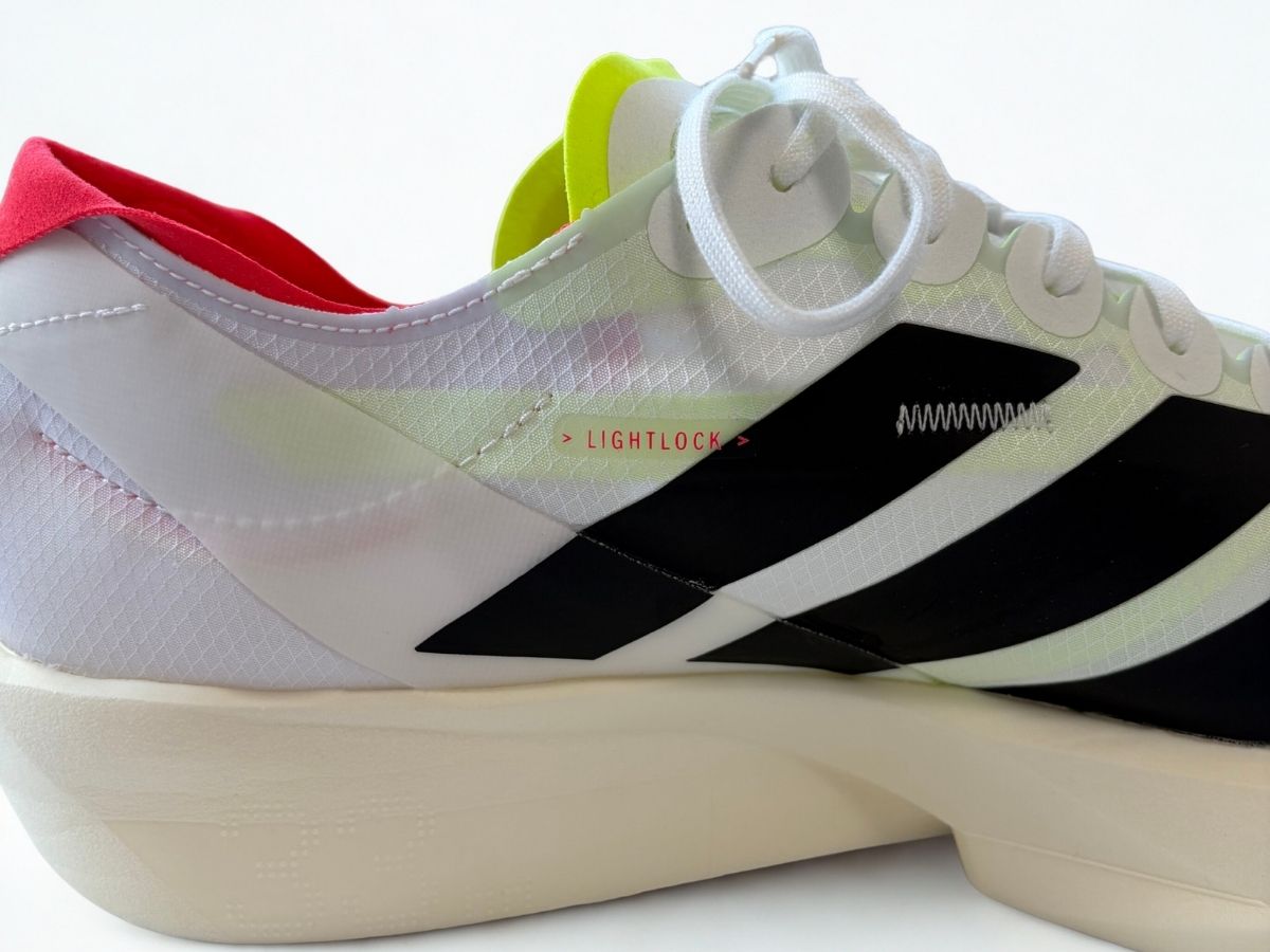 アディゼロ タクミセン 11のアッパーには、柔らかく足にフィットするLIGHTLOCK(ライトロック)が採用されています。